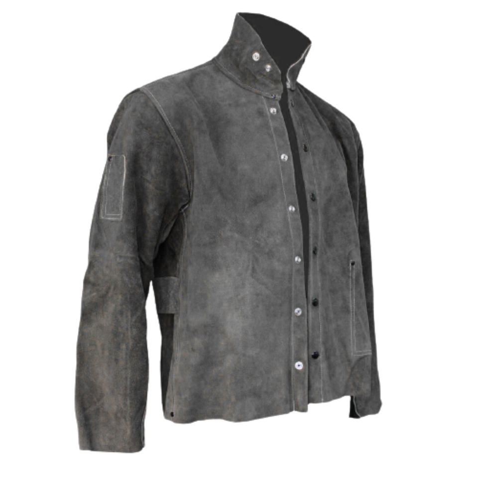 เสื้อแจ็คเก็ตหนังวัวแท้ทนไฟประสิทธิภาพสูงสำหรับงานเชื่อม ป้องกันอันตรายในอุตสาหกรรม ปกป้องร่างกาย