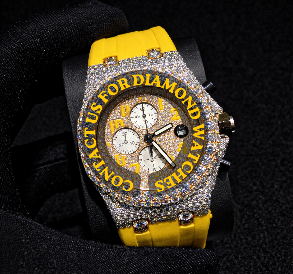 เพชรมออิสซาไนต์ส่วนบุคคลที่ดีที่สุดคุณสมบัติที่เป็นเอกลักษณ์และแถบยางสีเหลืองทันสมัยเครื่องประดับแฟนซีสำหรับผู้ชายและผู้หญิง