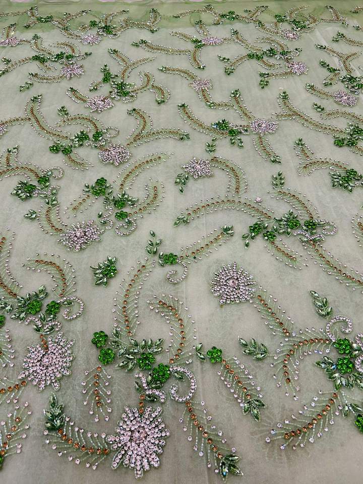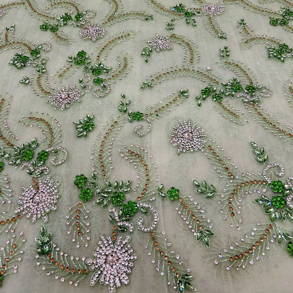 ผ้าลูกปัดหรูหรา 100% โพลีเอสเตอร์ ราคาดีที่สุด ประดับด้วยเพชรซิร์คอน ผลิตด้วยมือโดยผู้ผลิตจากอินเดีย สำหรับทำเสื้อผ้า ลายทอและลายตาข่าย