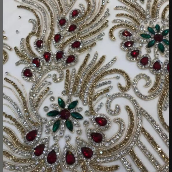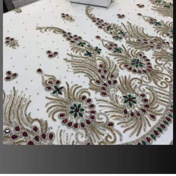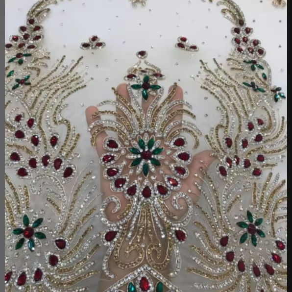 ผ้าลูกปัดโพลีเอสเตอร์100% หรูหราพร้อมเซอร์คอนแฮนด์เมดผู้จัดจำหน่ายเสื้อผ้าอินเดียทำจากผ้าทอและลายตาข่าย