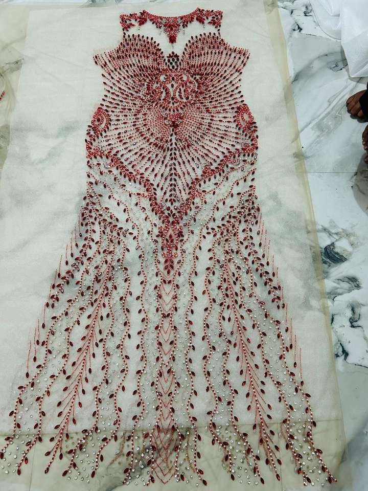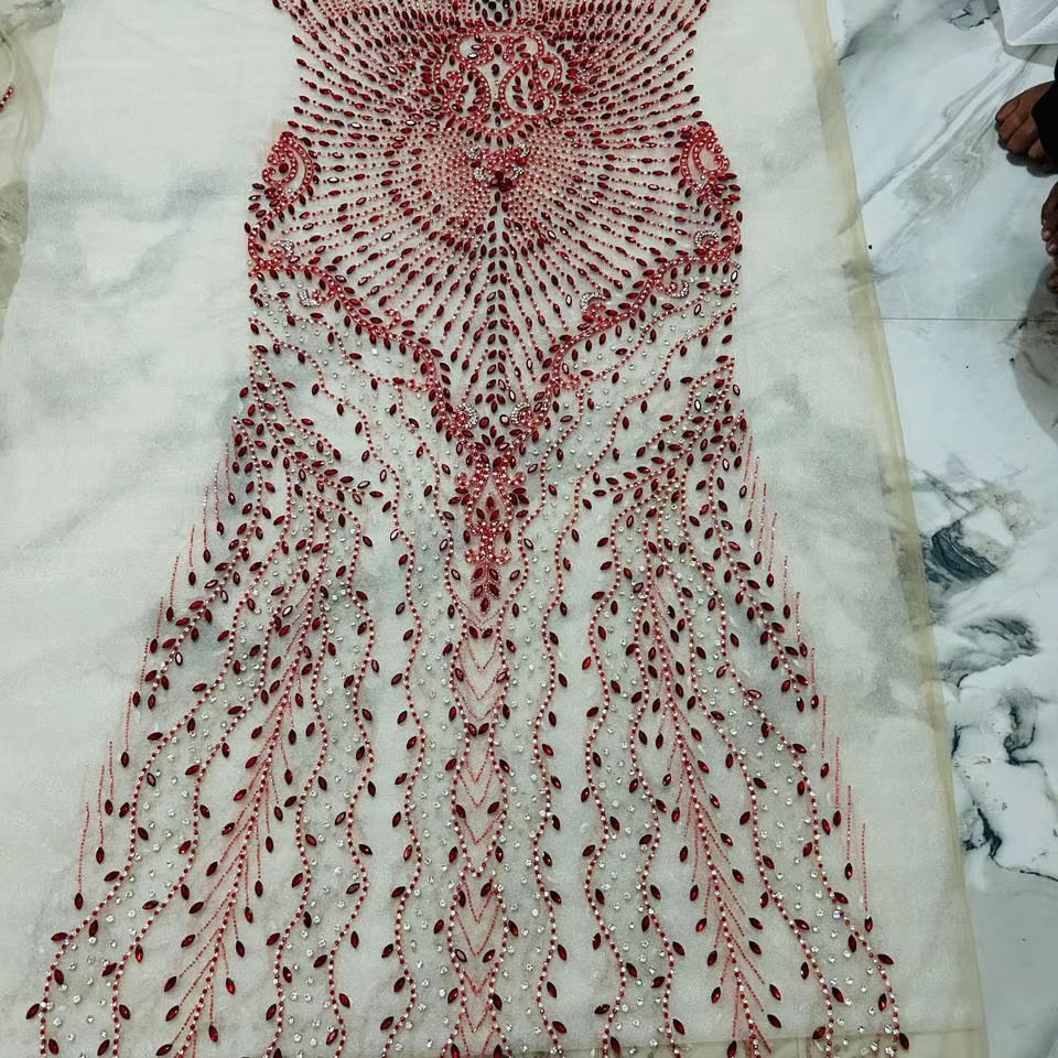 Best Price 100% Polyester Satin Fabric Luxury Beaded with Zircon Handmade Indian Supplier Wedding Garments Woven Mesh Pattern