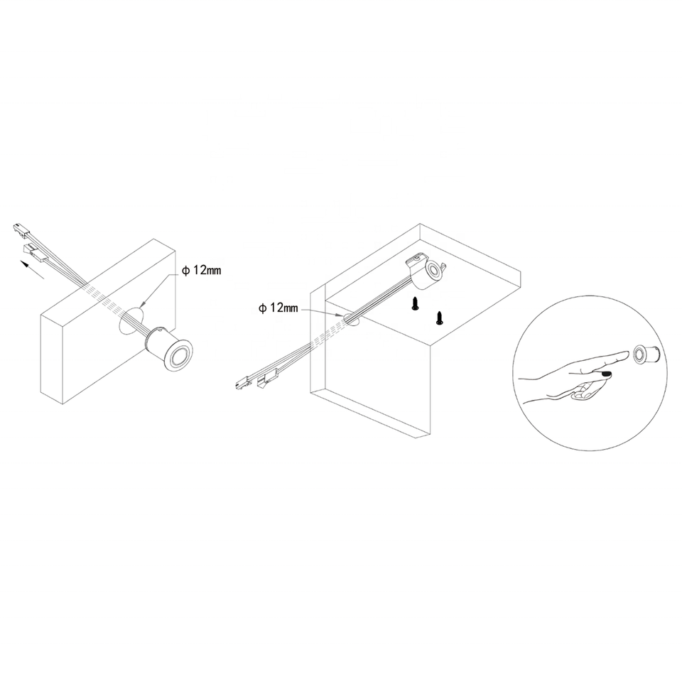 ขนาดการเจาะสำหรับการติดตั้งแบบฝัง:12มม.