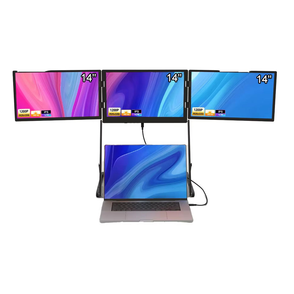 จอภาพพกพาแบบสามจอสำหรับแล็ปท็อป 14 นิ้ว FHD IPS ตัวขยายหน้าจอแล็ปท็อป พอร์ตเชื่อมต่อ USB แผง TFT ติดตั้งด้วยสายเดียว