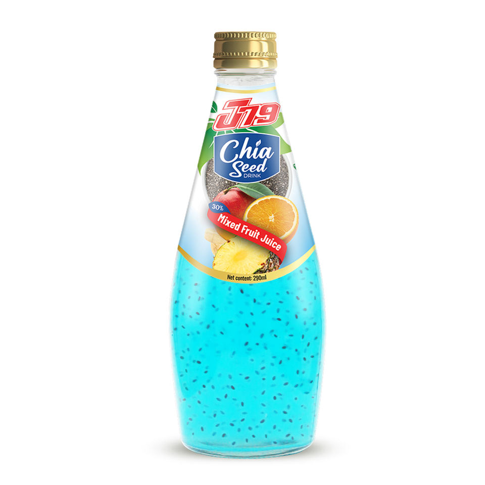 เครื่องดื่มเมล็ดเจียผสมน้ำผลไม้ ขวดแก้ว 290 มล. รุ่น J79 คุณภาพสูง ราคาดีที่สุด รับผลิตแบรนด์ส่วนตัว