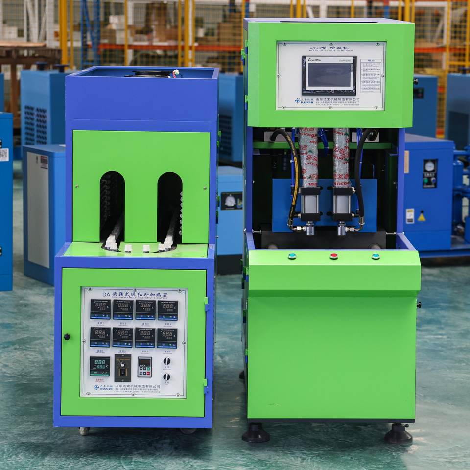 เครื่องเป่าขวดพลาสติกแบบกึ่งอัตโนมัติควบคุมด้วย PLC ยี่ห้อมิตซูบิชิ ความดันสูง สำหรับขวด PET ขนาด 0.1-3 ลิตร ราคาดีที่สุด 2 ช่องขึ้นรูป