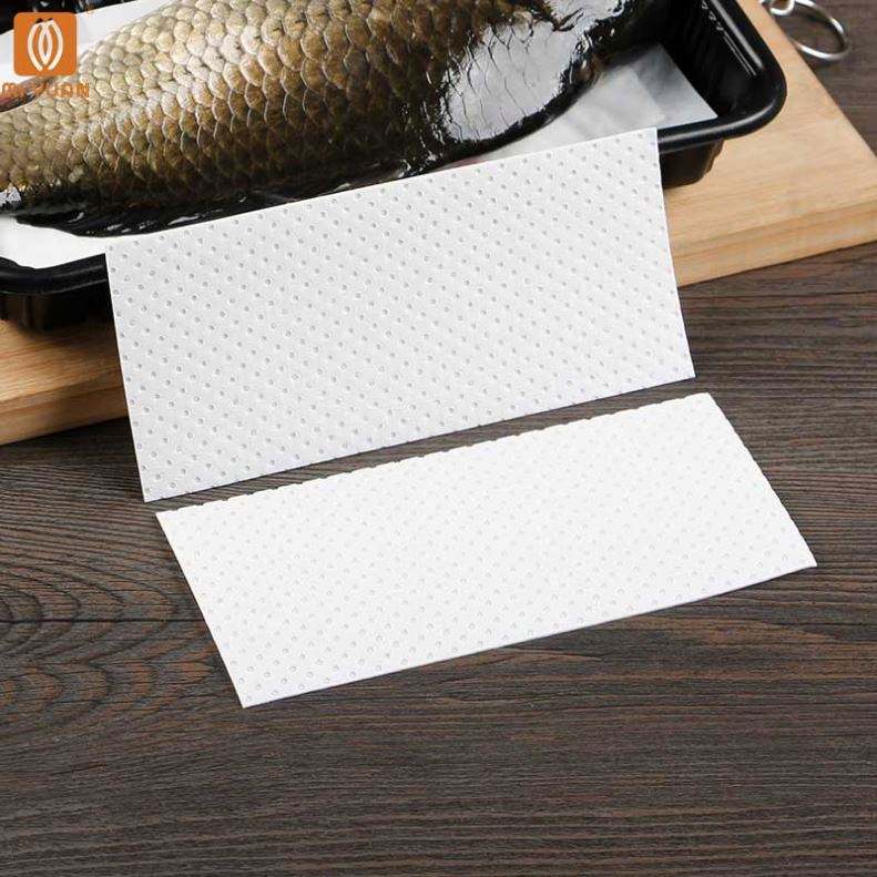 แผ่นซับน้ำราคาดีที่สุด วัสดุเยื่อกระดาษชั้นเดียว ปลอดภัยสำหรับผลไม้ เนื้อสัตว์ ปลา อาหาร แผ่นซับน้ำสำหรับบรรจุภัณฑ์อาหาร