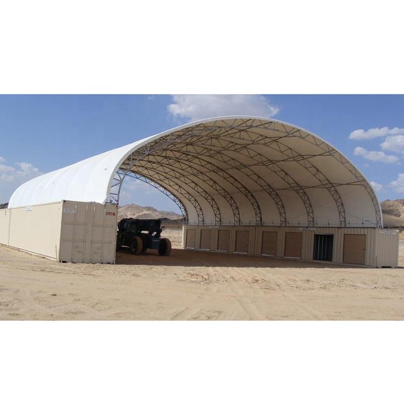 โกดังคอนเทนเนอร์ราคาดีที่สุด โครงสร้างหลังคาเมมเบรนกันน้ำสำหรับกลางแจ้ง อาคารเก็บของชั่วคราวทรงโดม ที่พักพิงคอนเทนเนอร์