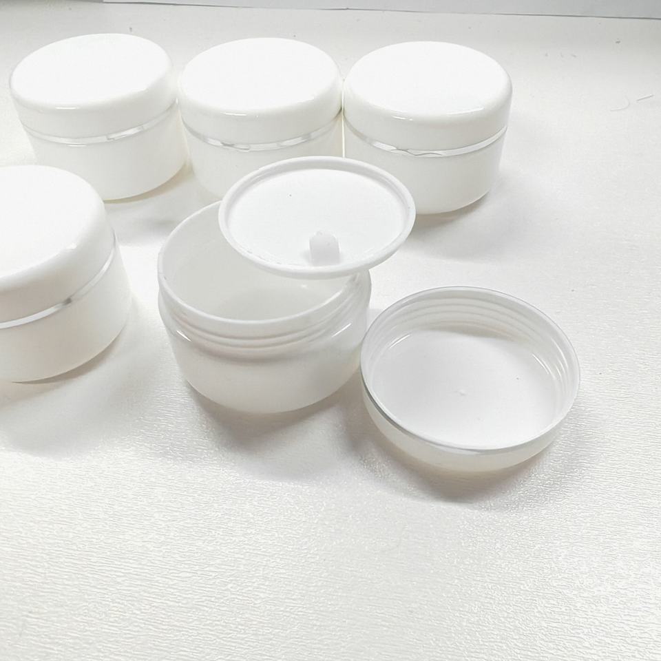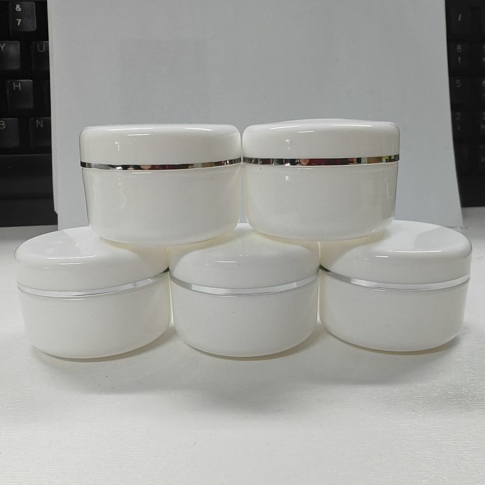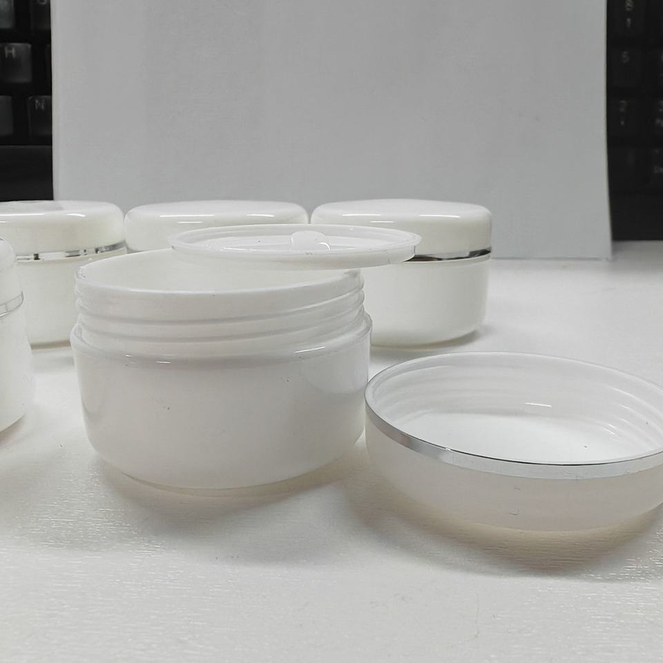 กระปุกครีมพลาสติกสำหรับเครื่องสำอาง ราคาดีที่สุด ขนาด 20 กรัม 50 กรัม 100 กรัม 250 กรัม ขอบสีทอง ขวดครีมพลาสติกสีขาว pp