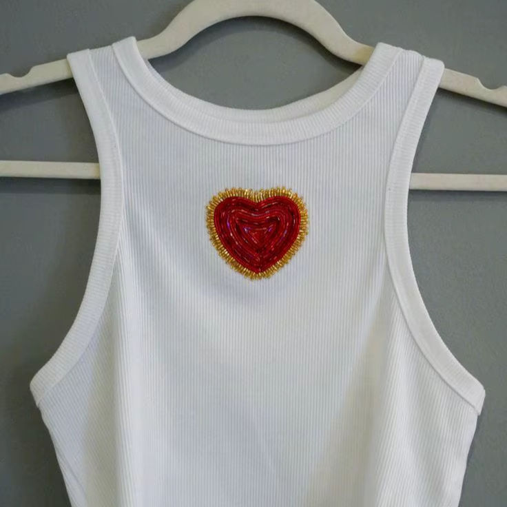 เสื้อกล้ามผ้าฝ้ายปักลายหัวใจประดับลูกปัด ราคาสุดคุ้ม เสื้อครอปแขนกุดสำหรับผู้หญิง สไตล์ลำลองฤดูร้อน คอกลม เสื้อถักสั้น