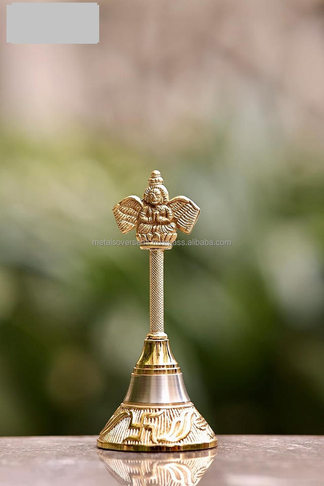กระดิ่งพิธีกรรมแบบมือถือ รุ่น Garuda Ghanti สีทองเงิน (สูง 4.5 นิ้ว กว้าง 2 นิ้ว) ผลิตโดย Metal Overseas ราคาดีที่สุด