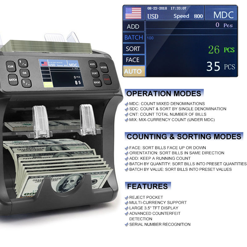 ชื่อ:เครื่องคัดแยกเงินสดและตรวจจับสกุลเงินที่ดีที่สุด