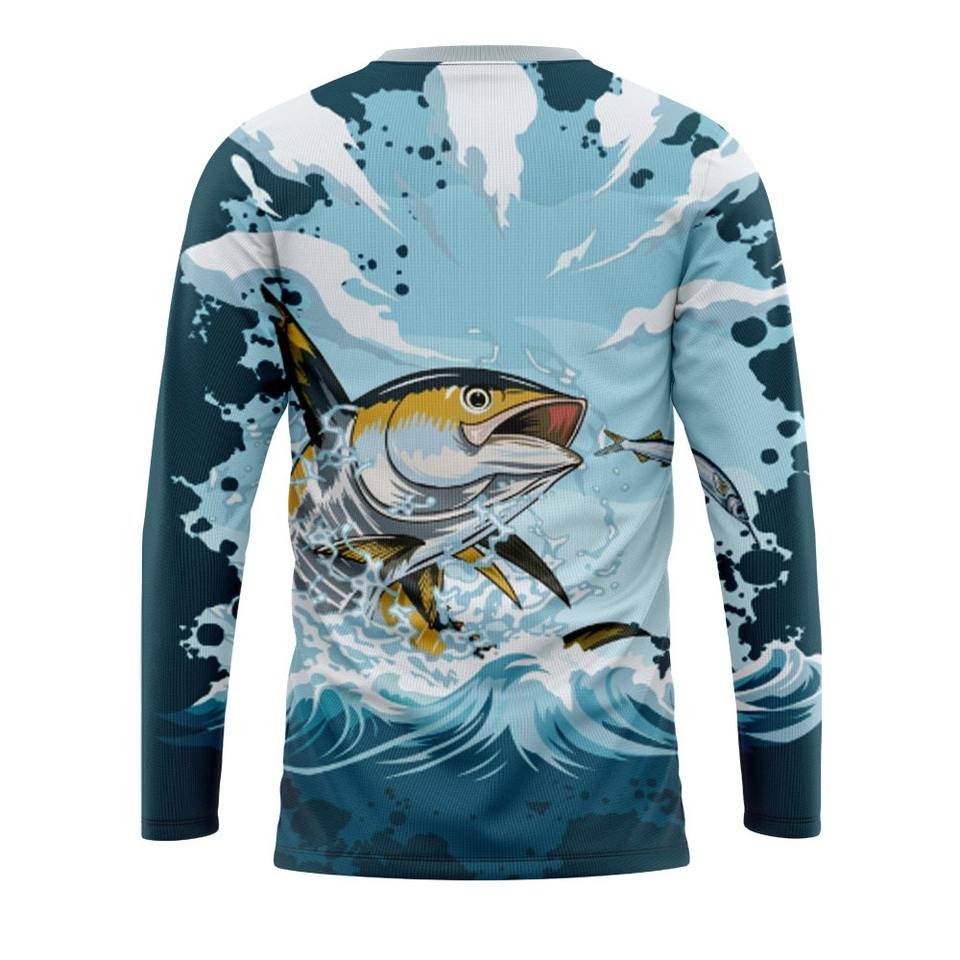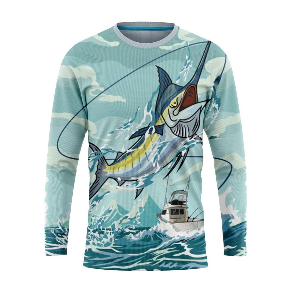 เสื้อตกปลาแขนยาวผู้ชาย พิมพ์โลโก้ตามสั่ง ราคาดีที่สุด UPF 50 โพลีเอสเตอร์ 100% ขายส่ง กันน้ำ บริการ OEM จัดส่งรวดเร็ว