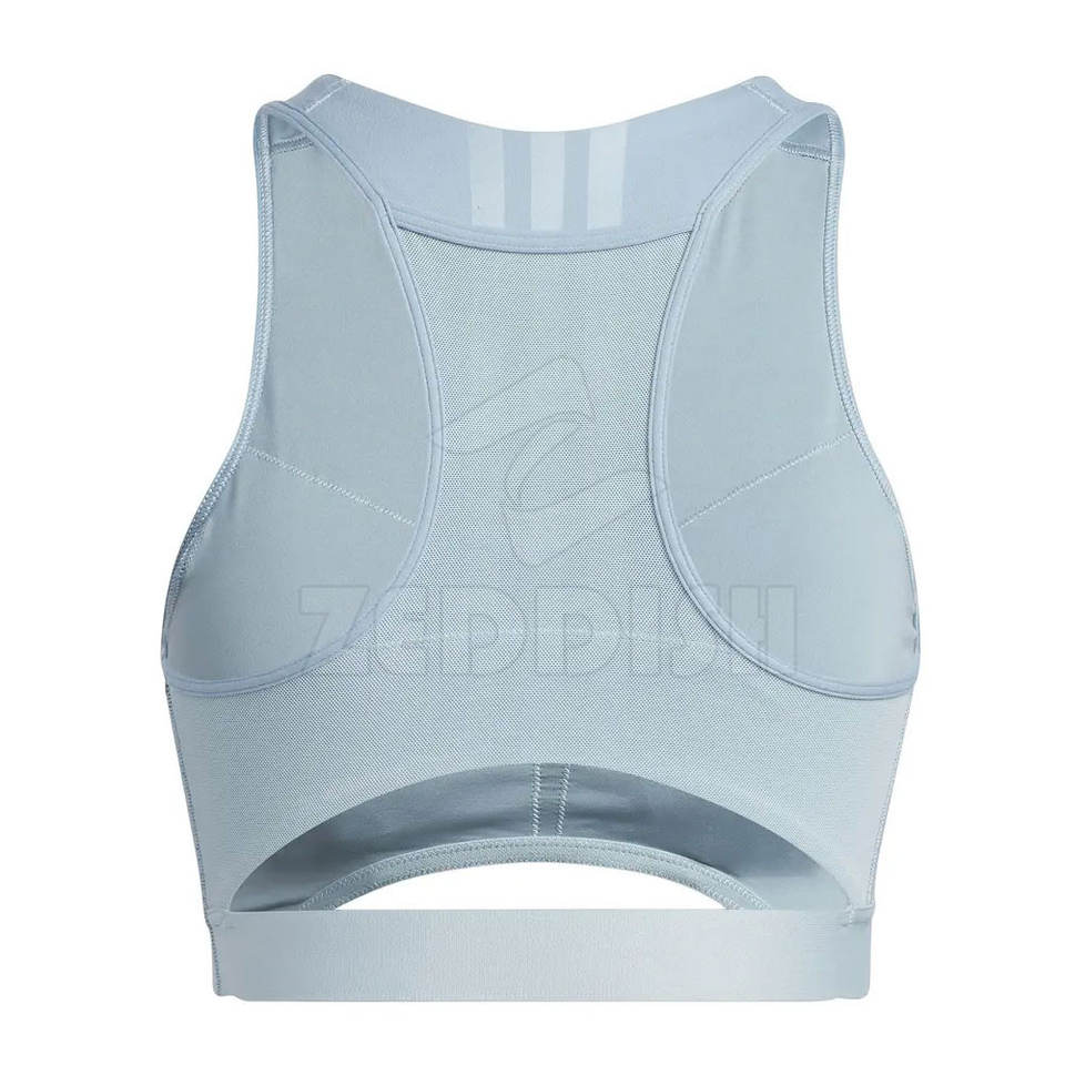 เสื้อชั้นในแบบถักระบายอากาศได้สำหรับผู้หญิงชุดออกกำลังกายเล่นกีฬาแบบสั่งทำได้พร้อมโลโก้บนสายรัดถ้วยฟรีและสายปรับขนาดได้