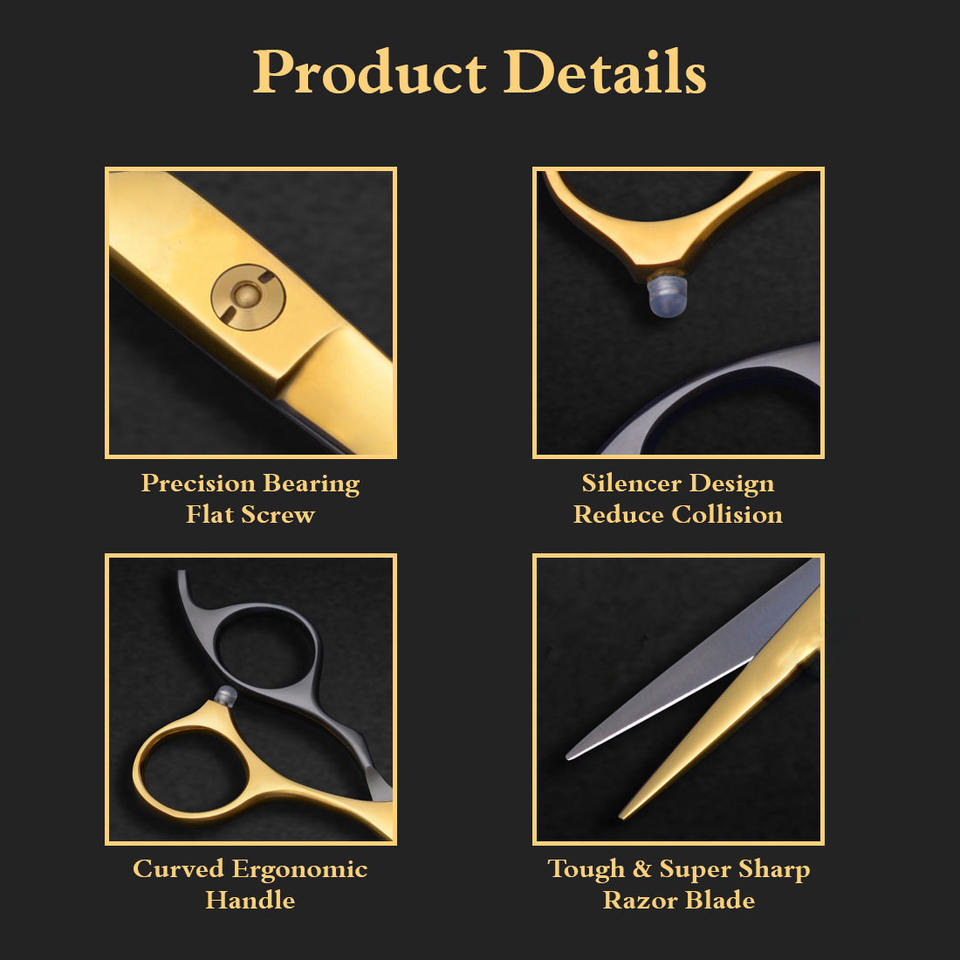 กรรไกรตัดผมมืออาชีพพร้อมใบมีดปลายแหลมสำหรับตัดแต่งผมและหนวดในสีที่กำหนดเอง