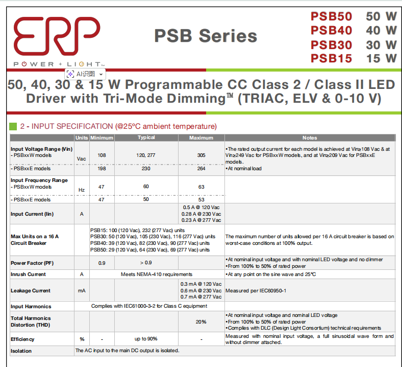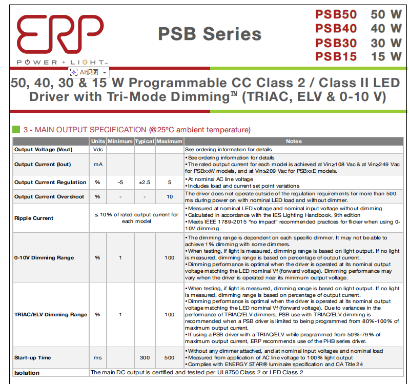 ไดรเวอร์ LED หรี่ไฟได้แบบสามโหมด รุ่น Psb50W-1200-42 600-1200mA 50W 28-42V กระแสคงที่ ยี่ห้อ Best Price EPR AC-DC