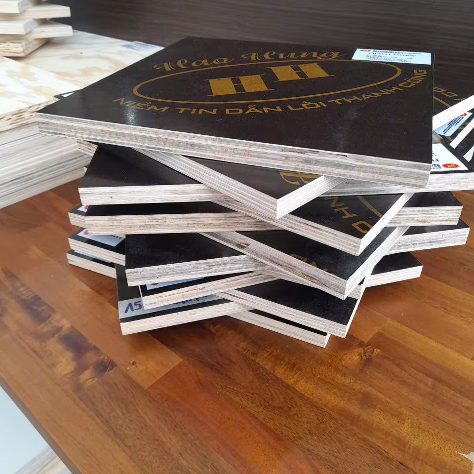 ไม้อัดฟิล์มฟีนอลิกสีดำ-น้ำตาล ขนาด 4x8 ฟุต ราคาดีที่สุด เป็นมิตรกับสิ่งแวดล้อม ผลิตจากโรงงานเวียดนาม ความหนา 12/15/18 มม.