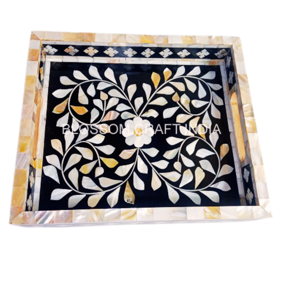 ถาดเสิร์ฟงานแต่งงานไม้สุดหรู ราคาดีที่สุด ประดับมุกฝังลายดอกไม้ งานฝีมืออินเดีย สำหรับตกแต่งบ้าน