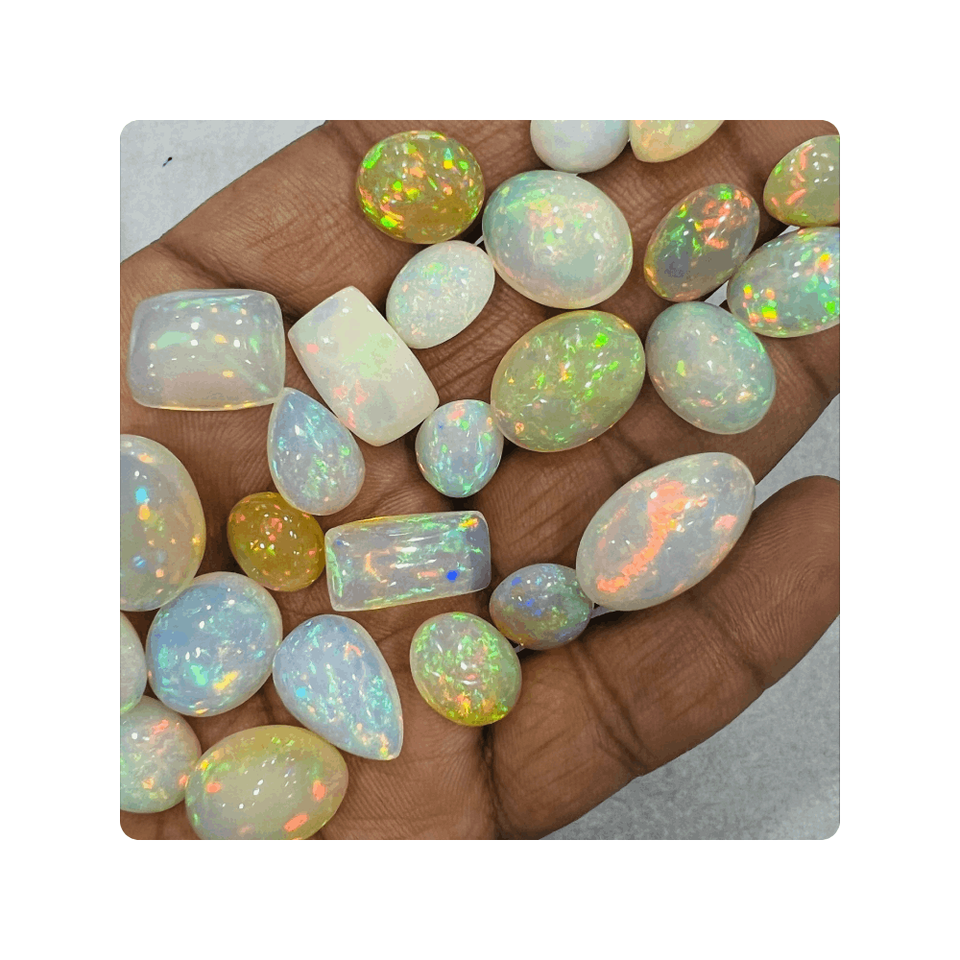 อัญมณีโอปอลทรงหลังเบี้ยโอปอลเอธิโอเปียธรรมชาติอัญมณีหลวมสำหรับทำเครื่องประดับทำด้วยมือจากผู้ผลิตในเมืองชัยปุระ