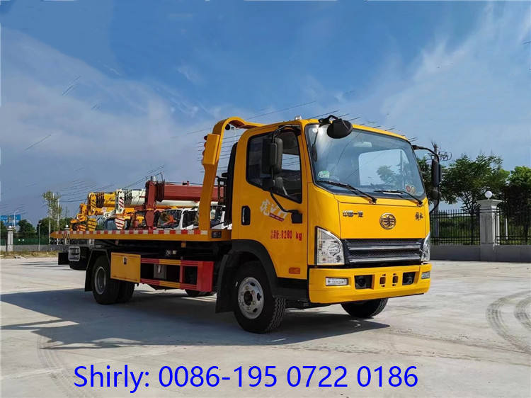 Best Price FAW 4x2 Flatbed Rollback Towing Wrecker 5 tons Sliding Platform Wrecker Truck for Sale