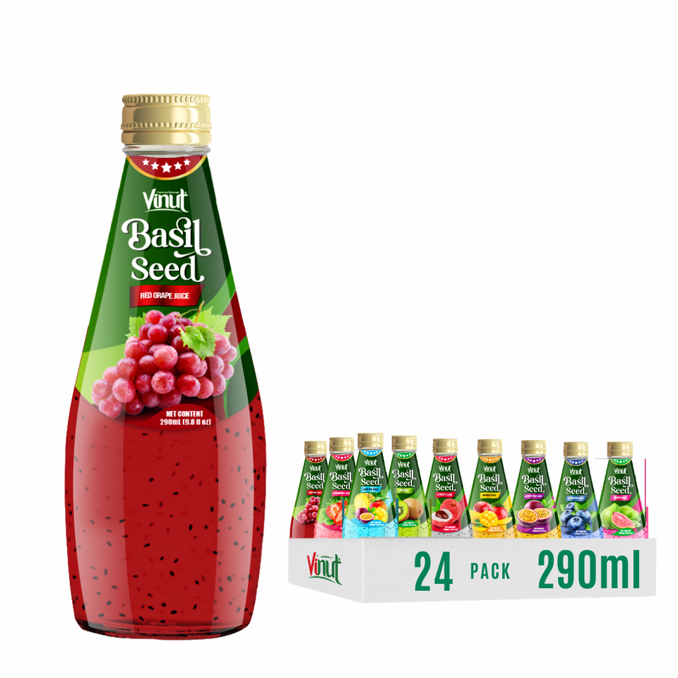 เครื่องดื่มเมล็ดโหระพาองุ่นแดงขนาด290มล. จากเวียดนามการแช่เมล็ดเจียปราศจากน้ำตาลฉลากส่วนตัว oM/od