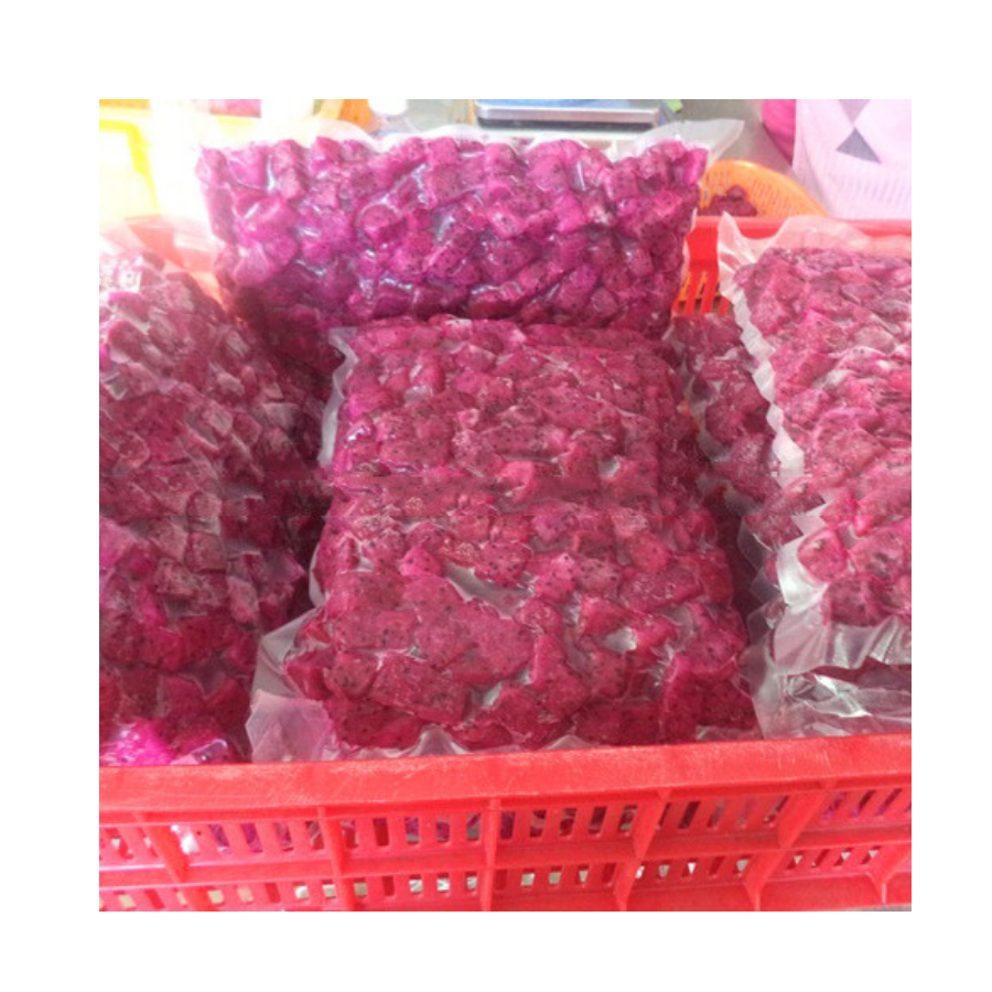 ก้อนผลไม้มังกรแช่แข็งสีแดงและขาวตัดสดสำหรับสมูทตี้