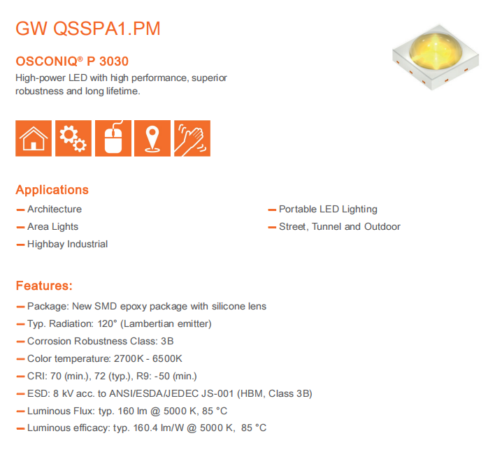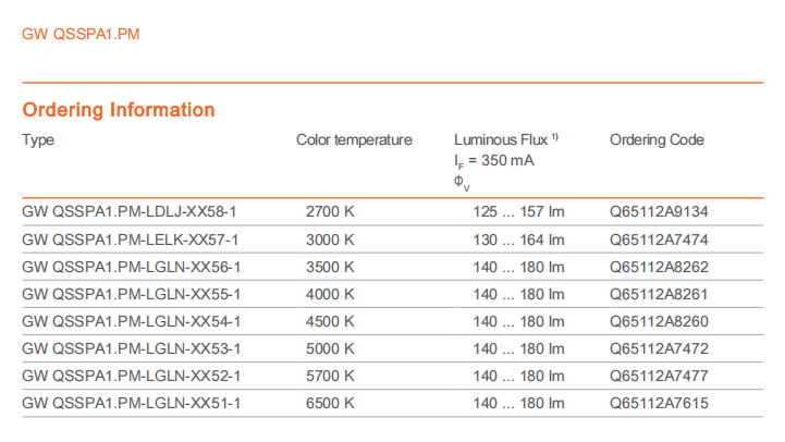 ชิปนำแสง3030ออสแรม1W 153LM QSSPA1.PM-LDLJ-XX58-1สีขาวโทนอุ่นธรรมชาติสีขาวโทนเย็น