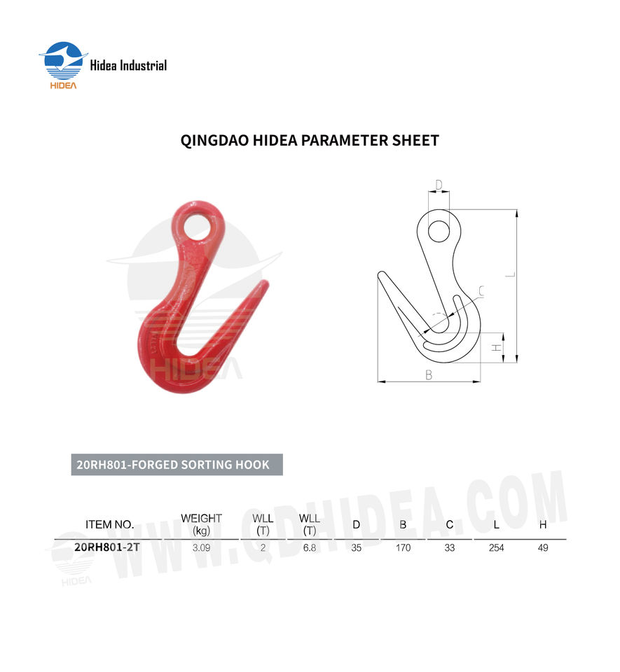 ราคาดีที่สุด HIDEA เหล็กอัลลอยด์คุณภาพสูง สำหรับโซ่สลิง WLL 2T ตะขอจับยกของอุตสาหกรรม G80 ตะขอจับแบบฟอร์จ