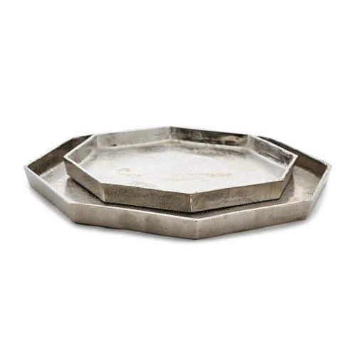 ถาดอลูมิเนียมโลหะ2ถาดสำหรับโต๊ะอาหารร้านอาหารและโรงแรมถาดเสิร์ฟทรงแปดเหลี่ยมดีไซน์เนอร์งานแฮนด์เมด