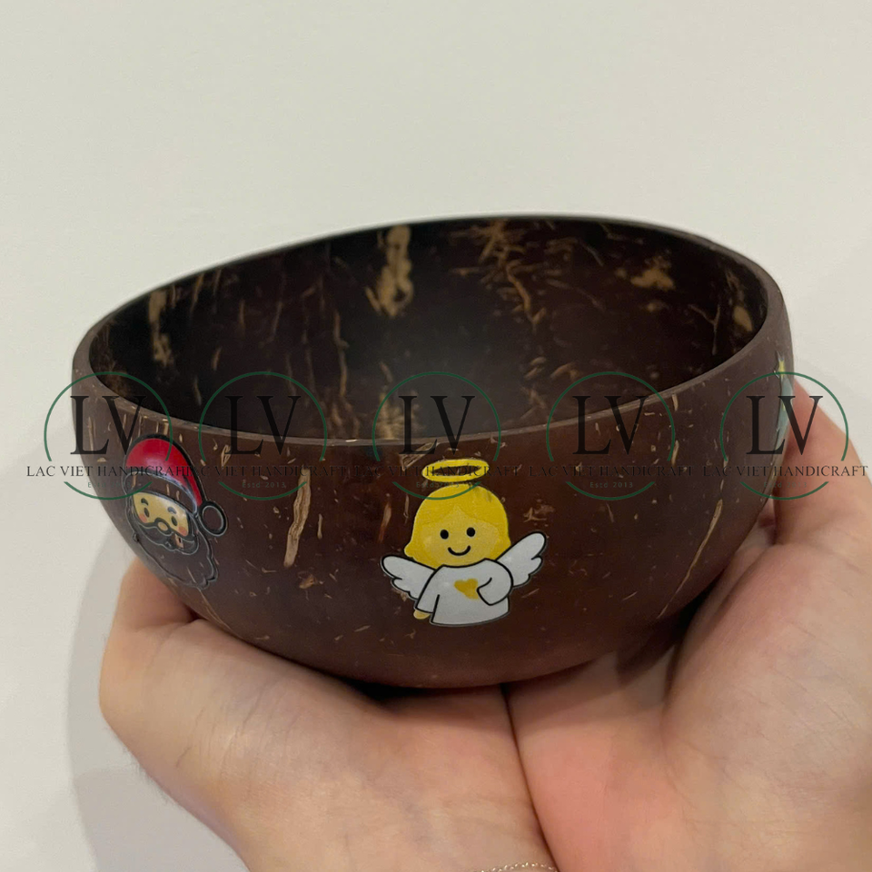 ชามเปลือกมะพร้าวขัดเงาทำมือ ราคาดีที่สุด เป็นมิตรกับสิ่งแวดล้อม ย่อยสลายได้ ของขวัญคริสต์มาสตกแต่งแบบกำหนดเอง ผลิตในเวียดนาม