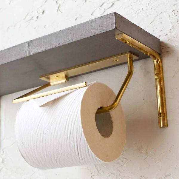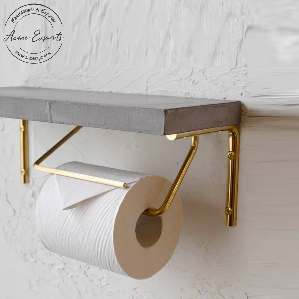 ที่ใส่กระดาษชำระขนาดเล็กแบบทำมือพร้อมชั้นเก็บโทรศัพท์ทำจากไม้สีดำสำหรับใส่กระดาษชำระติดผนังในห้องน้ำ