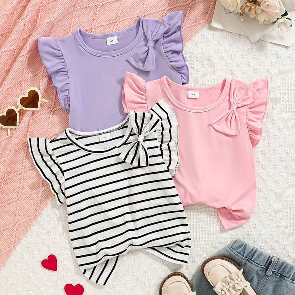 เสื้อ2025สั้นระบายอากาศได้ดีสำหรับเด็กผู้หญิงเสื้อยืดผ้าโพลีเอสเตอร์/ผ้าฝ้าย