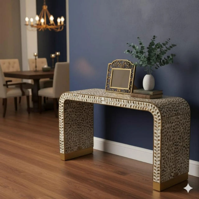 โต๊ะคอนโซลไม้สักฝังลายคุณภาพสูงราคาดีที่สุด งานแฮนด์เมด เฟอร์นิเจอร์ไม้สำหรับห้องโถงและทางเข้าบ้าน ตกแต่งบ้าน