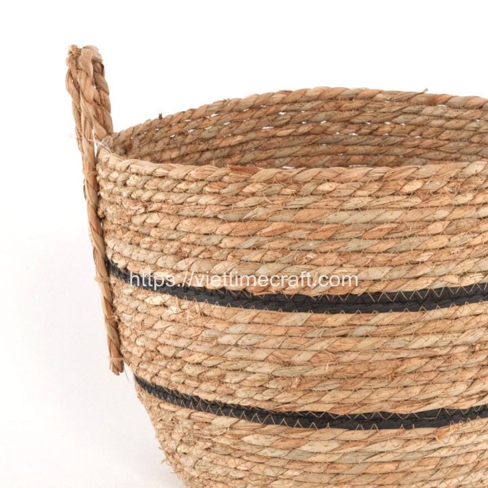 ตะกร้าใส่ของตกแต่งบ้านตะกร้าสานลายทางผักตบชวาสีดำตะกร้างานหัตถกรรมจากเวียดนาม