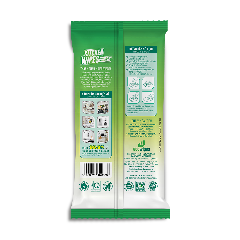 แผ่นเปียกสำหรับทำความสะอาดในครัวเรือน42แผ่นผ้าเช็ดครัวจากเวียดนาม