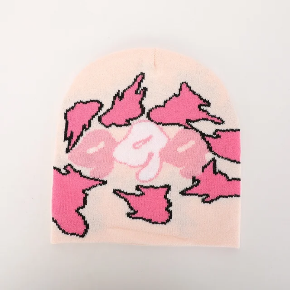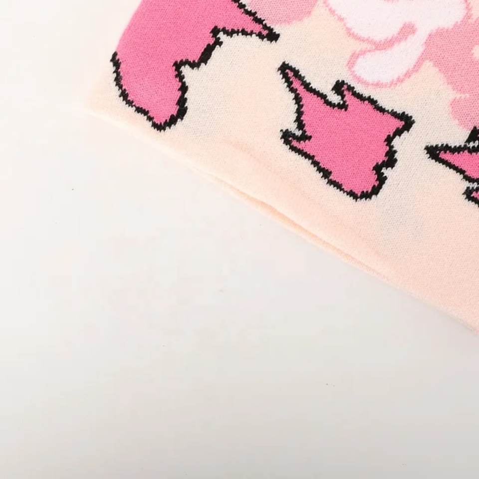 หมวกบีนนี่ผ้าแจ็กการ์ดหมวกถักลายหัวกะโหลกไม่มีกระดุมติดโลโก้ตามสั่งแบบพับได้สำหรับฤดูหนาว