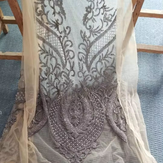 ผ้าลูกปัดโพลีเอสเตอร์100% งานแฮนด์เมดผ้าทอสไตล์อินเดียปักเลื่อมเสื้อผ้างานแต่งงานสไตล์อินเดีย