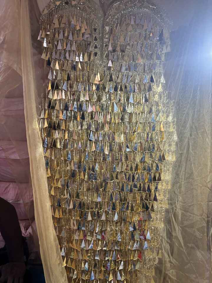 ผ้าตาข่ายทอเซอร์คอนปักลูกปัดโพลีเอสเตอร์ทำมือ100% จากอินเดียงานแฮนด์เมดคุณภาพสูง