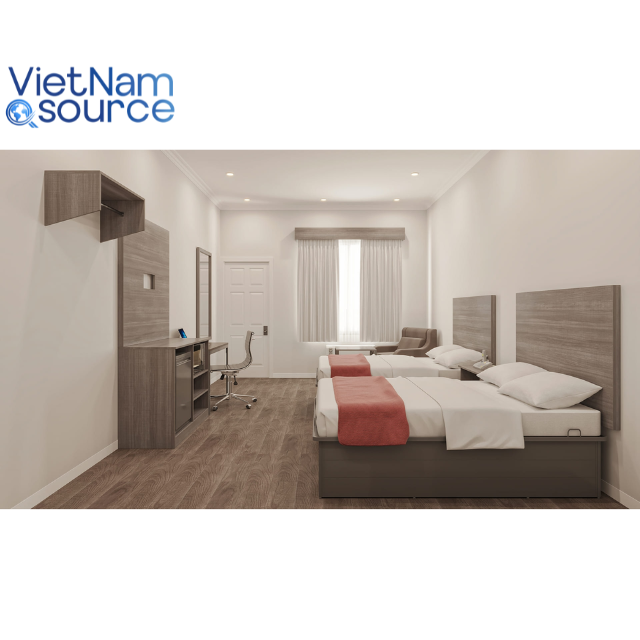 ชุดเฟอร์นิเจอร์ห้องนอนโรงแรม MDF/ไม้เนื้อแข็ง ราคาดีที่สุด - ขนาดเต็มรูปแบบ ดีไซน์ทันสมัย สำหรับอพาร์ทเม้นท์ - ขายตรงจากโรงงานเวียดนาม