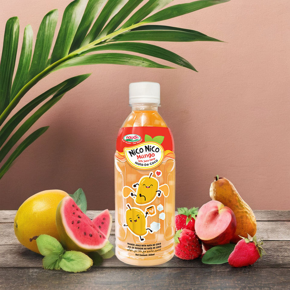 Best Price Mango Juice with Nata De Coco Nico Nico Drink 350ML PET Bottle - Free Sample Private Label Wholesale HALAL Bevererage
