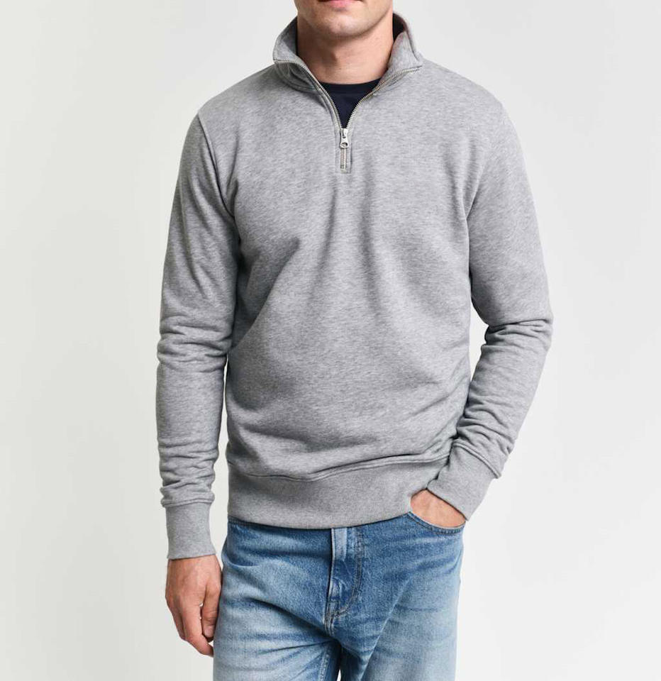 เสื้อสเวตเตอร์แบบมีซิปครึ่งตัวของผู้ชายเสื้อสวมหัวผ้าฝ้ายสีดำรุ่นใหญ่ผลิตตามสั่ง