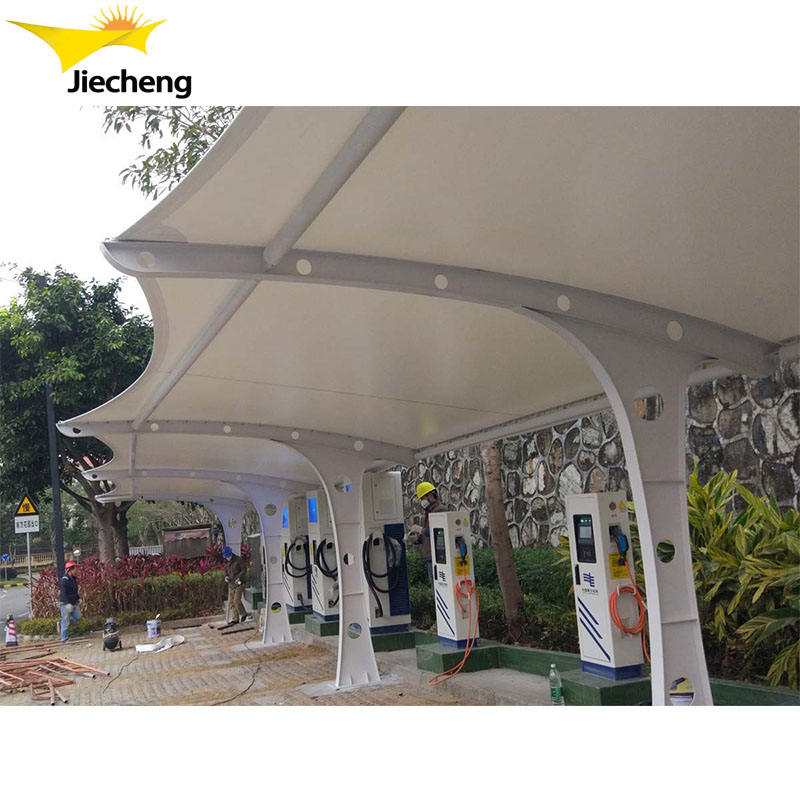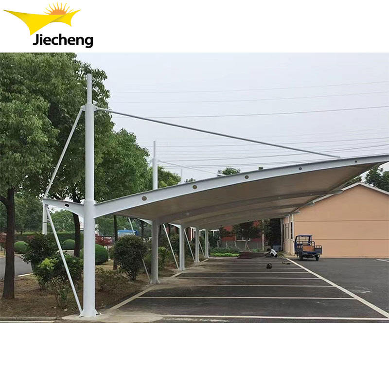 โครงหลังคาโรงรถโลหะดีไซน์ทันสมัยราคาดีที่สุด ผ้าคลุมเคลือบ PVC แบบคานยื่น