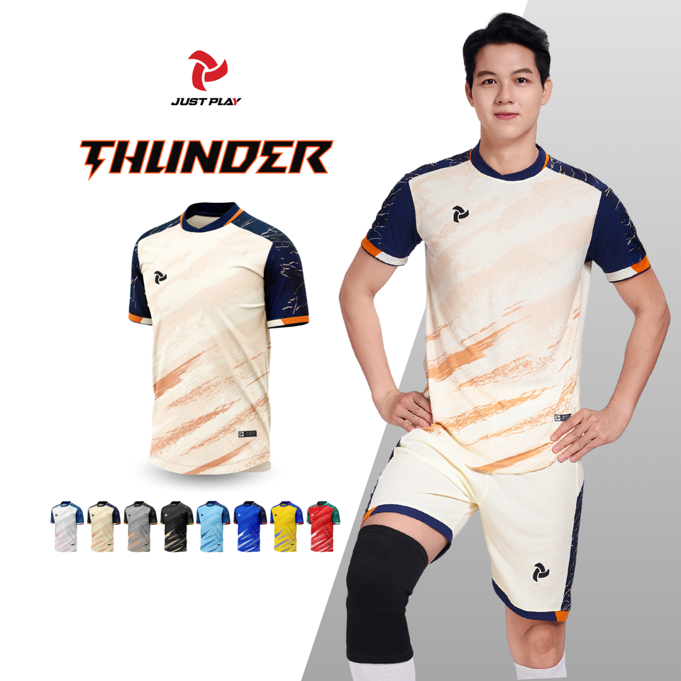 ชุดเครื่องแบบทีมฟุตบอลทันเดอร์100% สำหรับผู้ใหญ่เสื้อเจอร์ซีย์ฟุตบอลสั่งผลิตได้