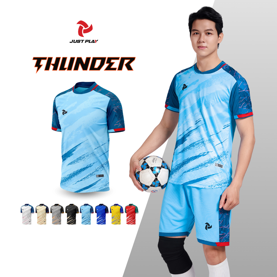 ชุดเครื่องแบบทีมฟุตบอลทันเดอร์100% สำหรับผู้ใหญ่เสื้อเจอร์ซีย์ฟุตบอลสั่งผลิตได้