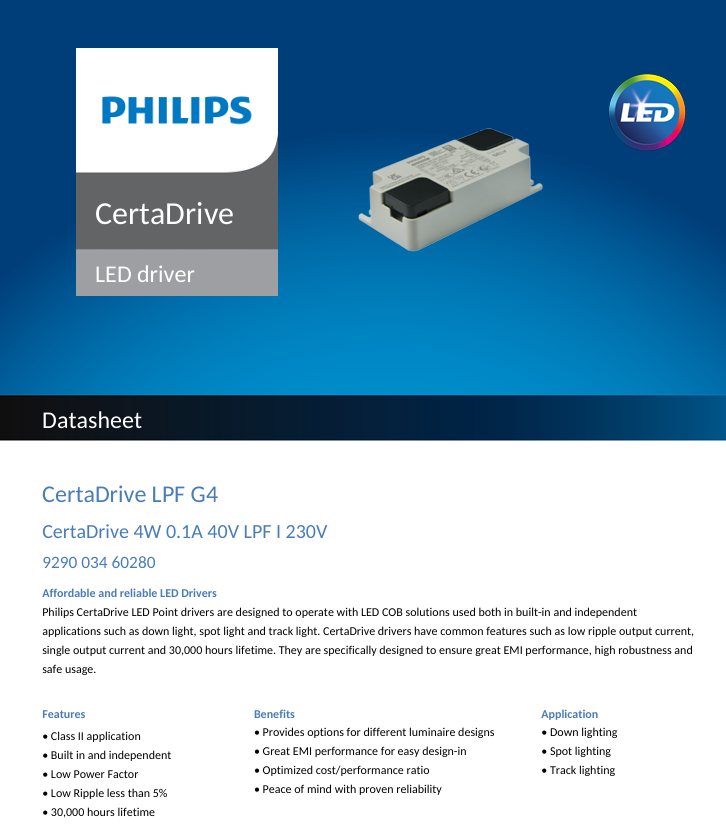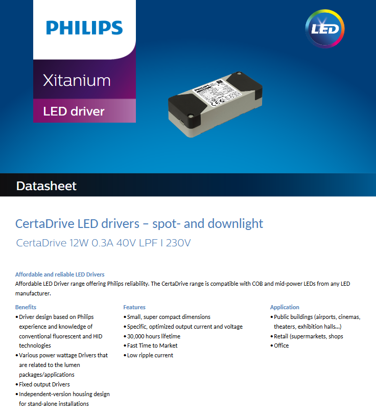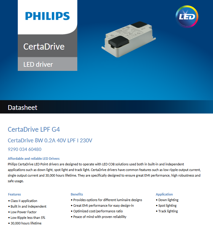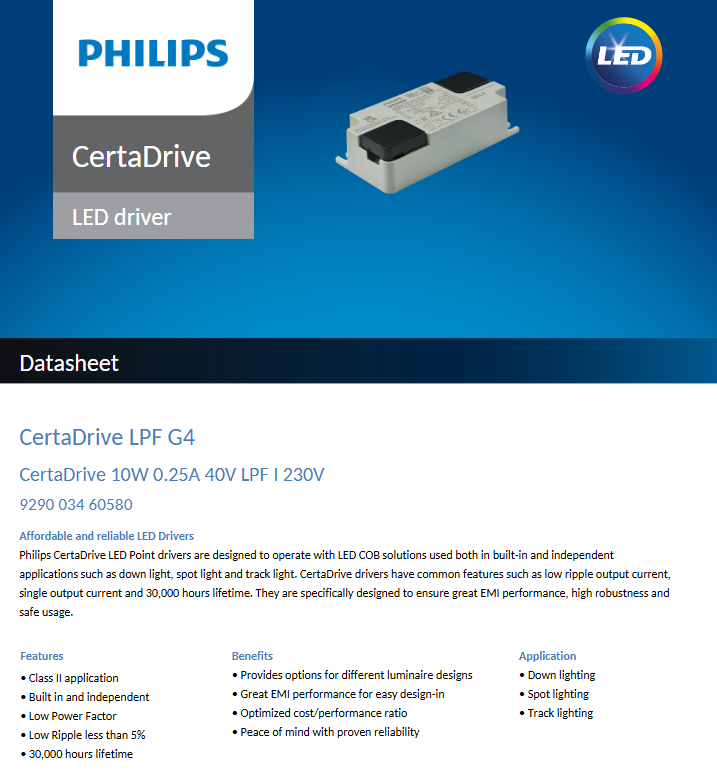 ไดรเวอร์ไฟ LED พลาสติก AC-DC Philips certadrive LPF 4W 6W 8W 10W 12W