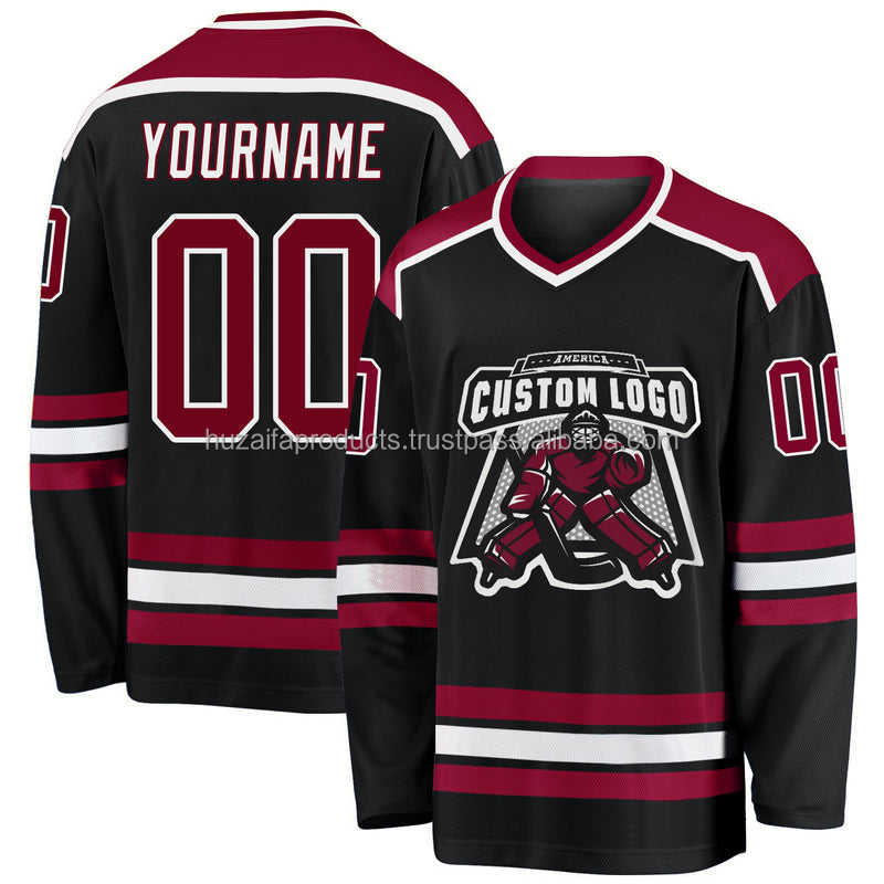 เสื้อเจอร์ซีย์เล่นกีฬาแขนยาวผ้าโพลีเอสเตอร์ระบายอากาศได้ดีเสื้อกีฬาฮอกกี้น้ำแข็งสำหรับ100% เสื้อเจอร์ซี่