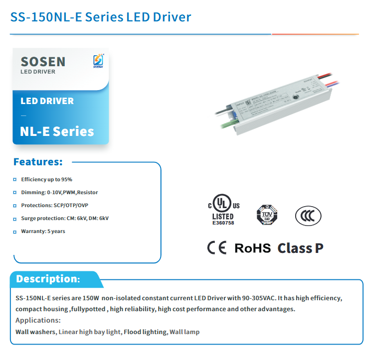 ราคาดีที่สุด SOSEN SS-150NL-E260B PWM Dimming รับประกัน 5 ปี DC180-260V 150W ประสิทธิภาพสูง ตัวเรือนอะลูมิเนียม ไฟ LED