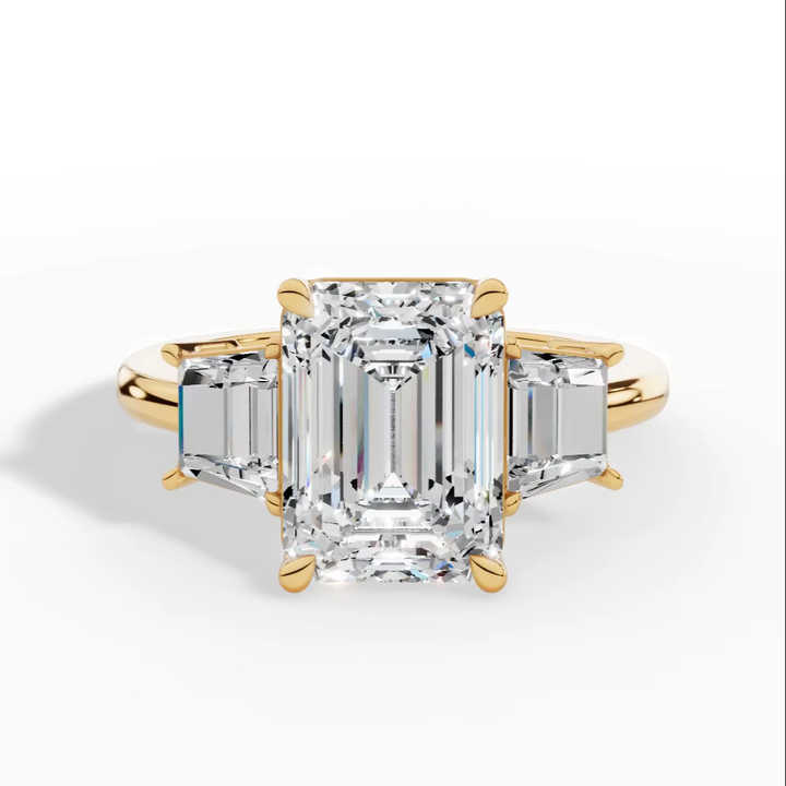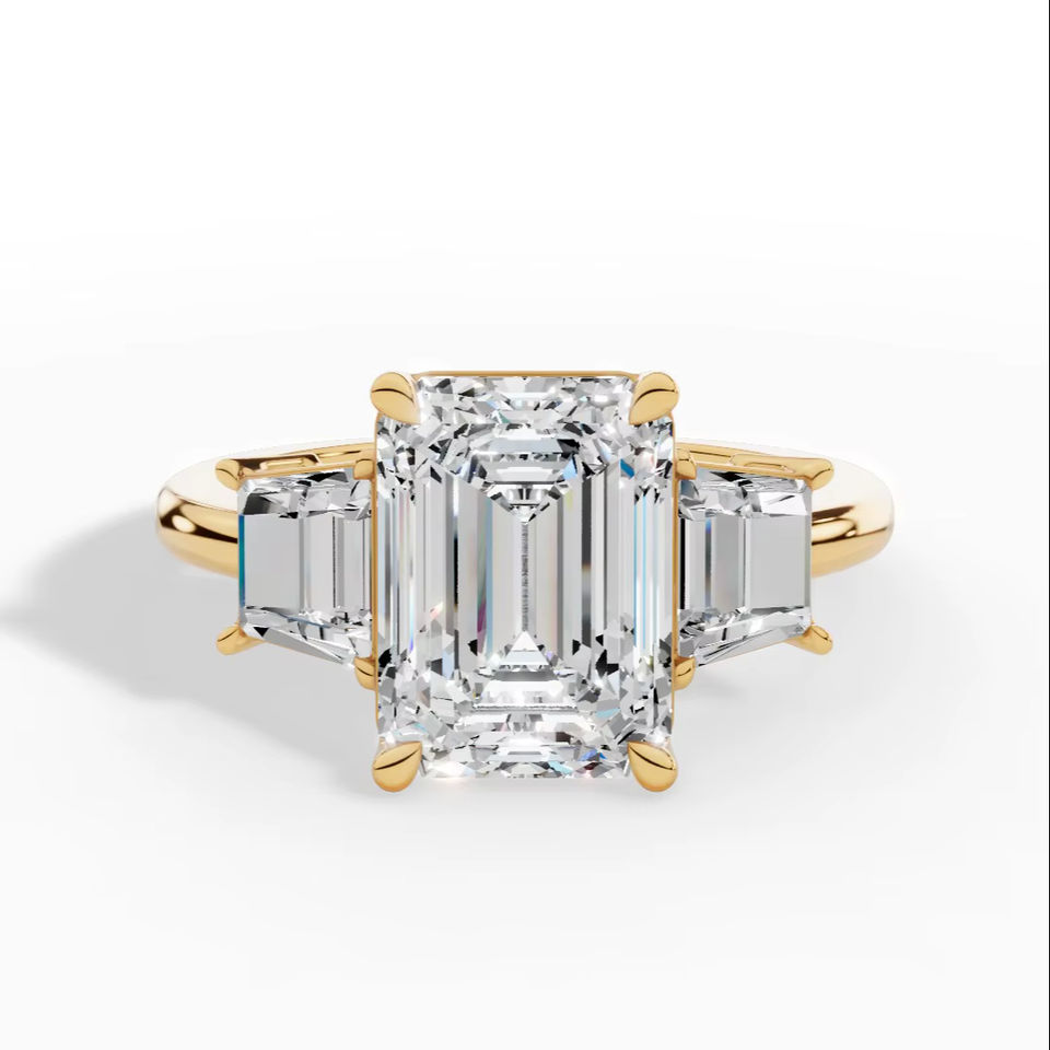 แหวนเพชรเม็ดใหญ่ทรงบาแก็ตต์และทรงสามเหลี่ยมสีเขียวมรกต ราคาดีที่สุด ทอง 18K ขายส่ง ผู้ผลิตเครื่องประดับชั้นดีแบบ OEM