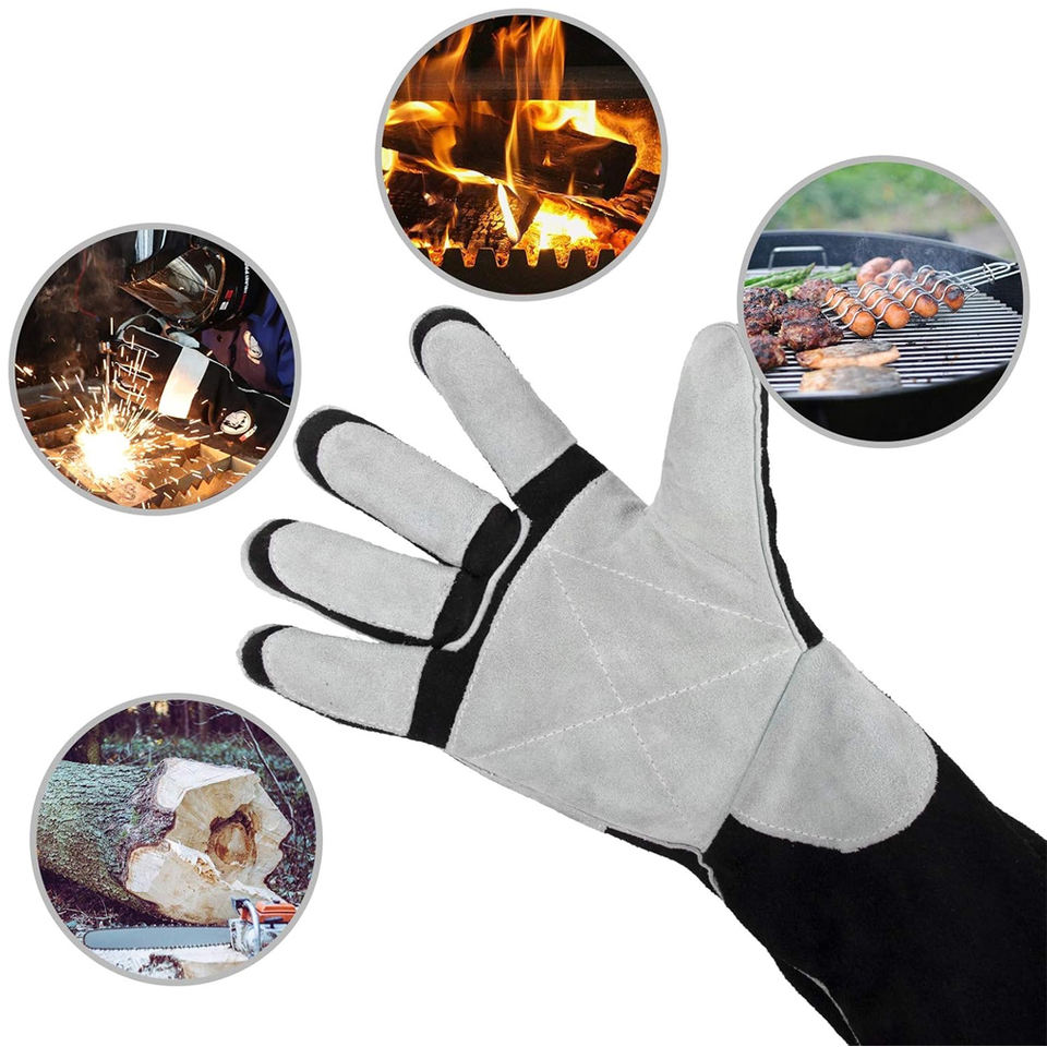 ถุงมือนิรภัยสำหรับงานเชื่อมสีขาวและสีดำ