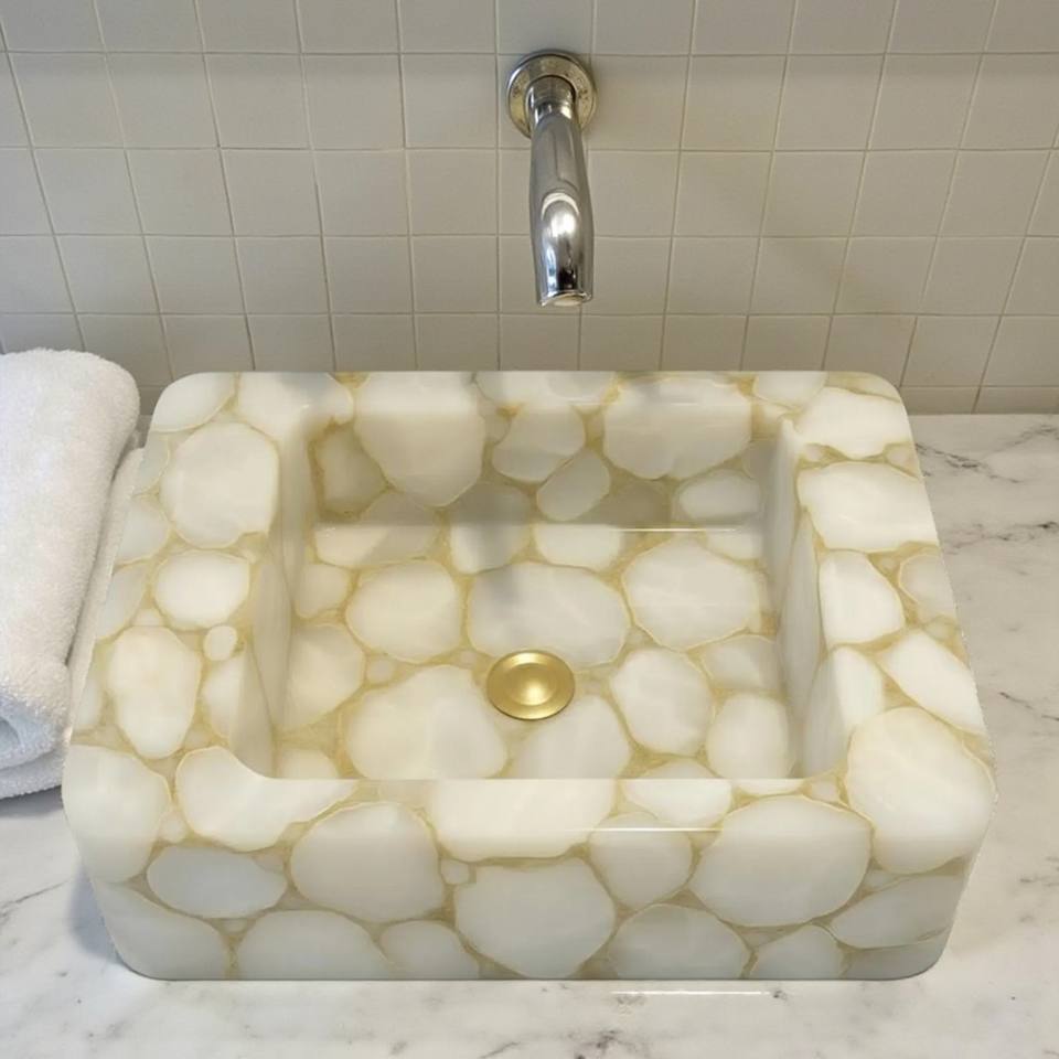 อ่างล้างจานหินอาเกตสีขาวอ่างล้างจานทรงสี่เหลี่ยมผืนผ้าสำหรับโรงแรมห้องน้ำอ่างโต๊ะเครื่องแป้งตกแต่งโต๊ะเครื่องแป้งโต๊ะเครื่องแป้ง