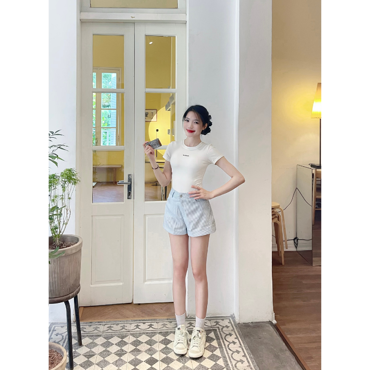 กางเกงขาสั้นผ้าสีกากีทรงหลวมเอวสูง ระบายอากาศได้ดี สำหรับผู้หญิง ราคาดีที่สุด ผลิตในเวียดนาม มีตัวอย่างฟรี